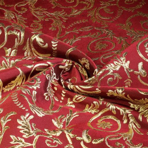 Jacquard is a fabric with a woven design that is visible on both sides. This fabric is suitable for making various types of clothing. This design is a runner up for carnival and theater and decoration The fabric differs slightly from a smooth jacquard. As you can see in the photo, parts in the fabric have a small bubble giving it an even richer look. This design is available from Funkytex in 8 different colorways. Extremely suitable for making a costume. Certain parts of the design have bubbles.