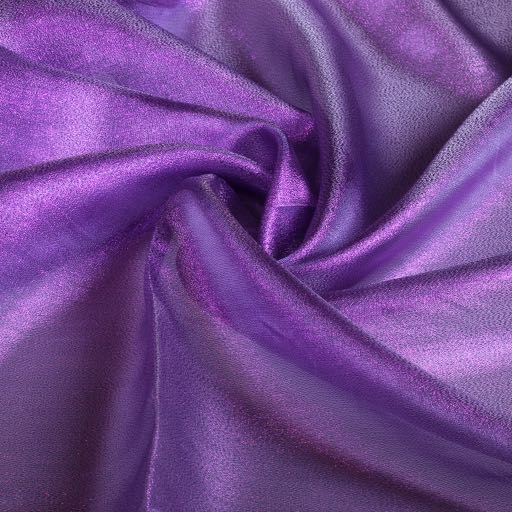 This fabric has a soft smooth back and a " crepe" front . It is a light weight fabric and weighs 50 grams/m2 . The fabric has a slight sheen , "lurex " appearance . Good to use for decoration and for making curtains.