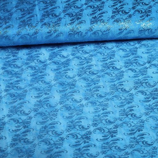 This luxurious, transparent fabric is also called Organza . It is printed with glitter in a damask design , when processing the fabric some of the glitter comes off . Due to its light weight, it provides a smooth fall and chic look . With its shimmering pattern, the fabric catches the light beautifully, giving a stylish and exclusive effect . The fabric is ideal for using curtains , net curtains , decorative upholstery , table linens and wedding and party decorations